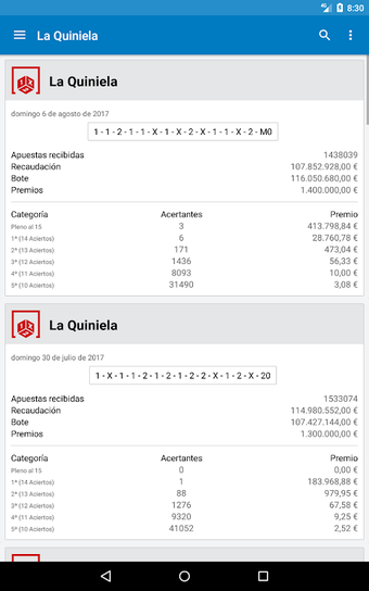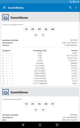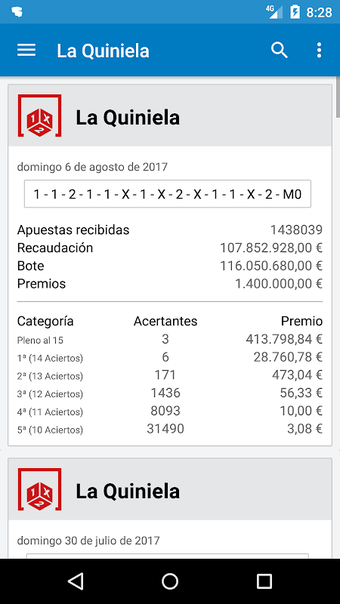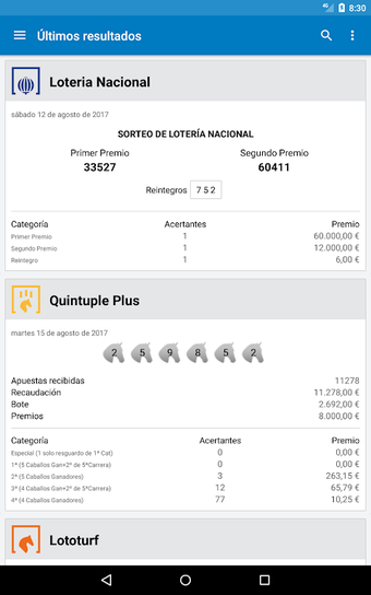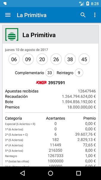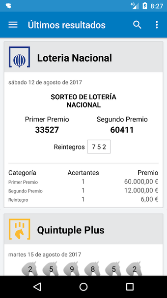 Resultados Loterias e Apostas é um aplicativo Android projetado para fornecer aos usuários os últimos resultados de várias loterias e jogos de apostas. Isso inclui opções populares como a Loteria Nacional, Bonoloto, Primitiva, Euromilhões e outras, tornando-se uma ferramenta abrangente para entusiastas de loteria. Os usuários também podem verificar resultados de eventos especiais como a Loteria de Natal e a Loteria El Niño.